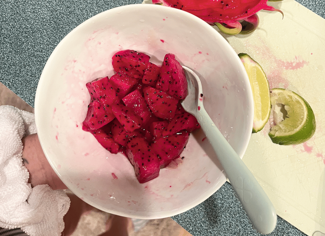 Enjoying juicy, fresh, fruit and making it a sacred moment of gratitude and manifesting. My go-to right now is romanticizing the simplicity of eating a red dragonfruit with a big squeeze of lime and a little bit of honey. It’s tropical, dreamy and the color actually connects to the crown chakra, making it a full-circle moment to listening to 963 Hz. Second pick is white peaches, they’re in season and they smell divine!!
